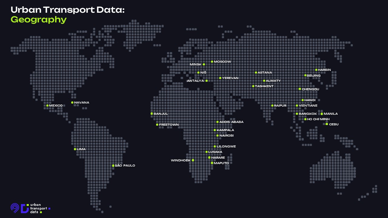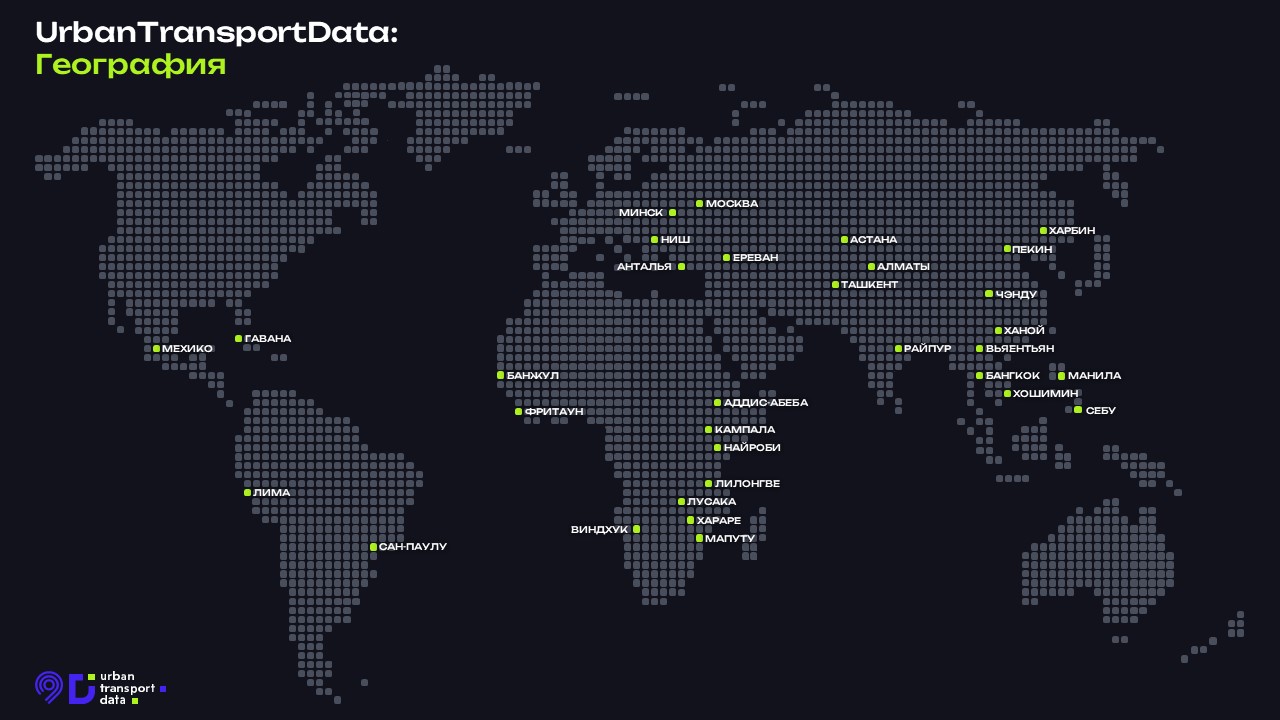 Проект UrbanTransportData уже объединяет 32 города Европы, Азии, Африки и Америки, в том числе признанных региональных лидеров в развитии городского транспорта, таких как Москва, Пекин и Сан-Паулу. Также широкая география проекта включает в себя столицы африканских стран, европейские города и другие мегаполисы Латинской Америки.