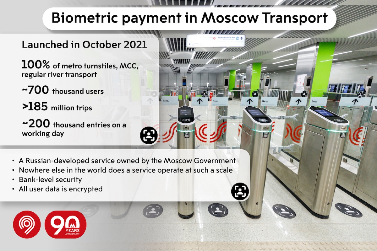 A major milestone has been achieved in Moscow: the biometric fare payment service is now operational at every turnstile in the Moscow Metro and the Moscow Central Circle (MCC).